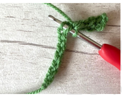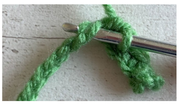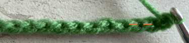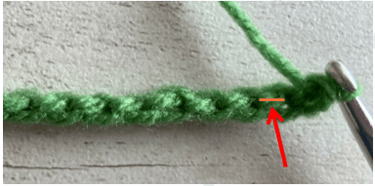 The chain below contains 13 chain stitches If you look closely at the starting chain, you will see three loops – two on the front and one on the back. The front top and bottom loops form a sideways ‘V’ shape on the front of the chain as shown below.