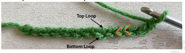 This method leaves two loops at the bottom edge of the crochet fabric (the front bottom loop and back bump).