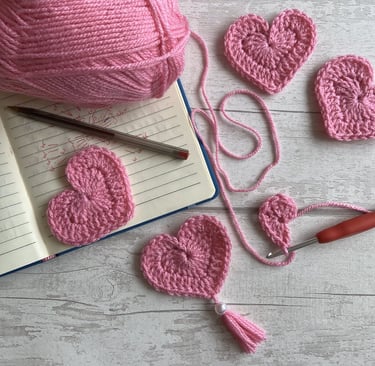 Make all the same colour or mix it up with different colours to match your colour theme. Each heart has just two rounds of crochet so this is a quick project. Any DK yarn and 4mm crochet hook can be used so they are a great stash buster project. They look great with our without the bead and tassel.