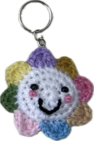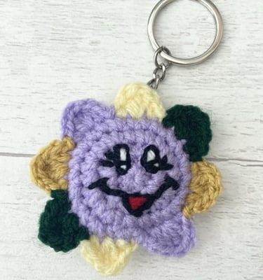 Your flower keyring is complete! I hope you enjoyed this project and found the pattern easy to follow. I would love to see your finished keyrings, so share a picture on social media by tagging @scattiecrochet. If you have any questions or suggestions, please feel free to email me at scattiecrochet@yahoo.com