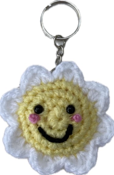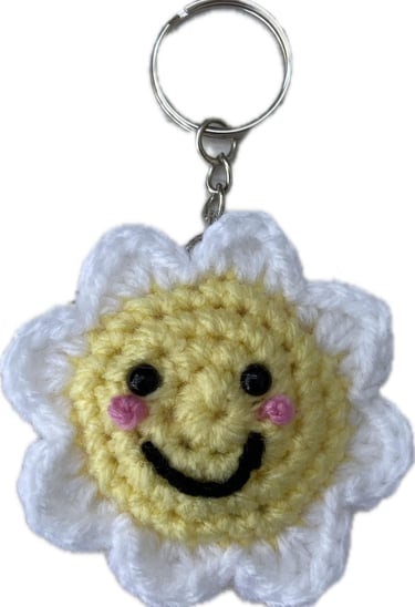 Copyright Scattie Crochet. All rights reserved. This crochet pattern and images/pictures are the property of Sarah Catterall at Scattie Crochet. Please do not copy, alter, or sell the pattern or claim this pattern as your own. The smiley flower keyrings you make following this pattern are yours and you are free to sell them, however, it would be appreciated if you would credit Scattie Crochet in your listing.